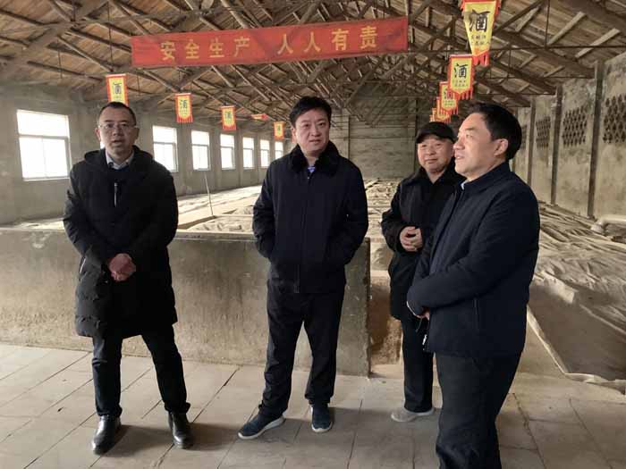 2022年1月14日市經(jīng)信局局長(zhǎng)吳海波、副局長(zhǎng)何志奎,在區(qū)經(jīng)信局支訓(xùn)海、古井鎮(zhèn)王光凱書(shū)記、李廠部長(zhǎng)的陪同下,來(lái)到亳州市好運(yùn)酒業(yè)實(shí)地調(diào)研,先后參觀了釀酒車間、污水處理設(shè)施、原酒儲(chǔ)存庫(kù),詳細(xì)了解近年來(lái)的生產(chǎn)狀況,并傳達(dá)市里的有關(guān)扶持政策,對(duì)好運(yùn)酒業(yè)的原酒質(zhì)量給予高度評(píng)價(jià)。